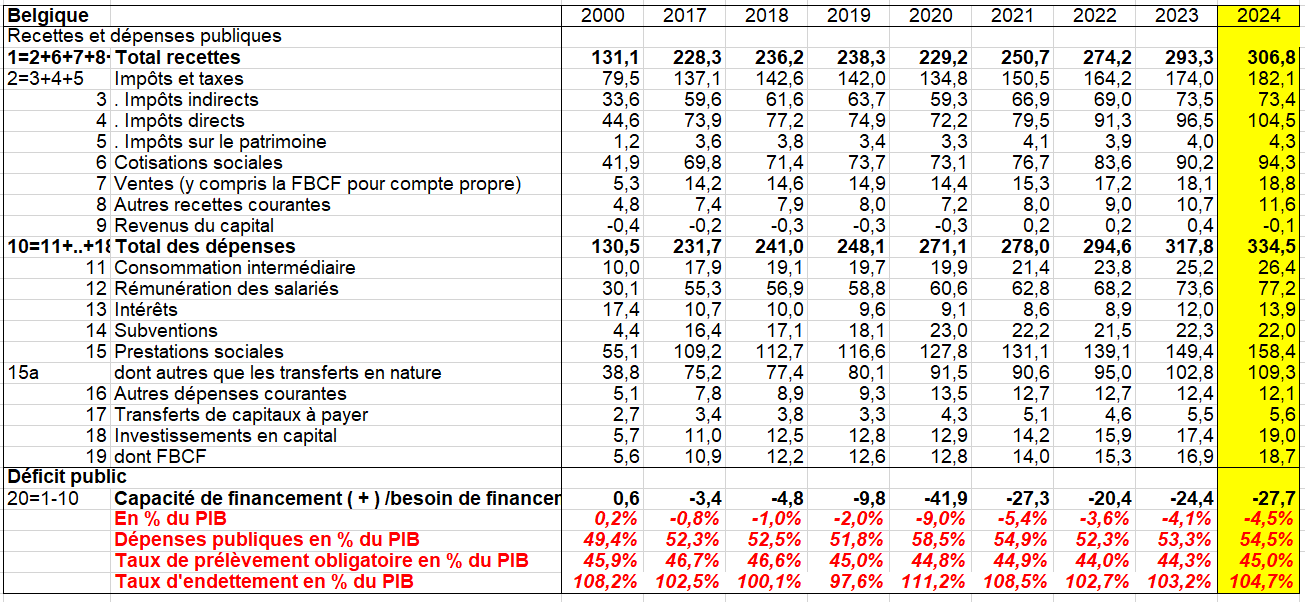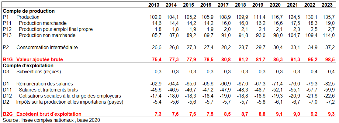 ° On présente ici les comptes et ratios des administrations publiques (APU), leurs recettes et leurs dépenses, l’emploi, la consommation finale des APU,… . Le partage volume-prix de services non marchands est étudié dans la page Mesure des volumes et des prix.