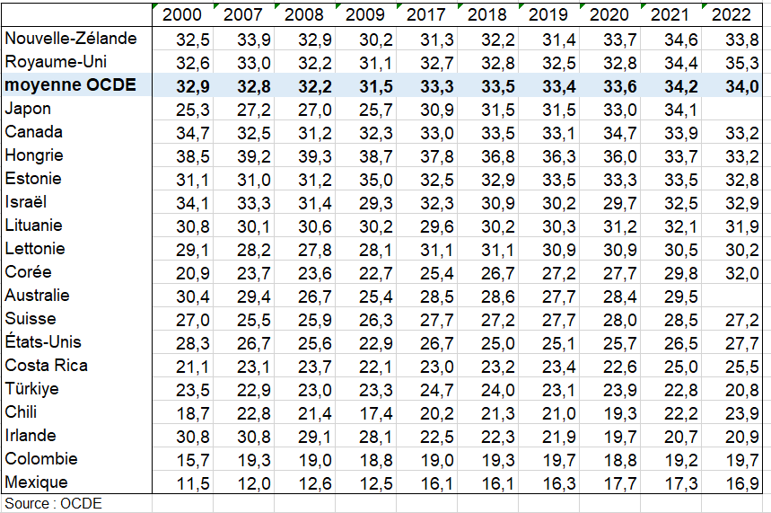 En 2021, les coûts de production ont représenté en moyenne à 21.6 % du PIB dans les pays de l’OCDE (graphique suivant). Les plus élevés ont été enregistrés en Finlande (31.1 %), en Islande (30.3 %) et en suède (29.5 %) – tous des pays scandinaves -, ce qui s’explique par la prestation généralisée de services à financement public et leurs coûts relativement élevés.