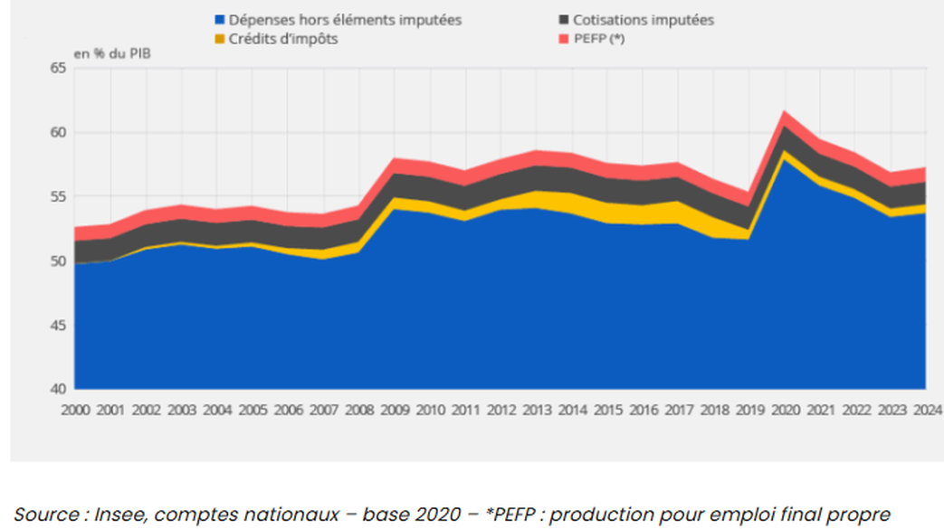 ° On présente ici les comptes et ratios des administrations publiques (APU), leurs recettes et leurs dépenses, l’emploi, la consommation finale des APU,… . Le partage volume-prix de services non marchands est étudié dans la page Mesure des volumes et des prix.