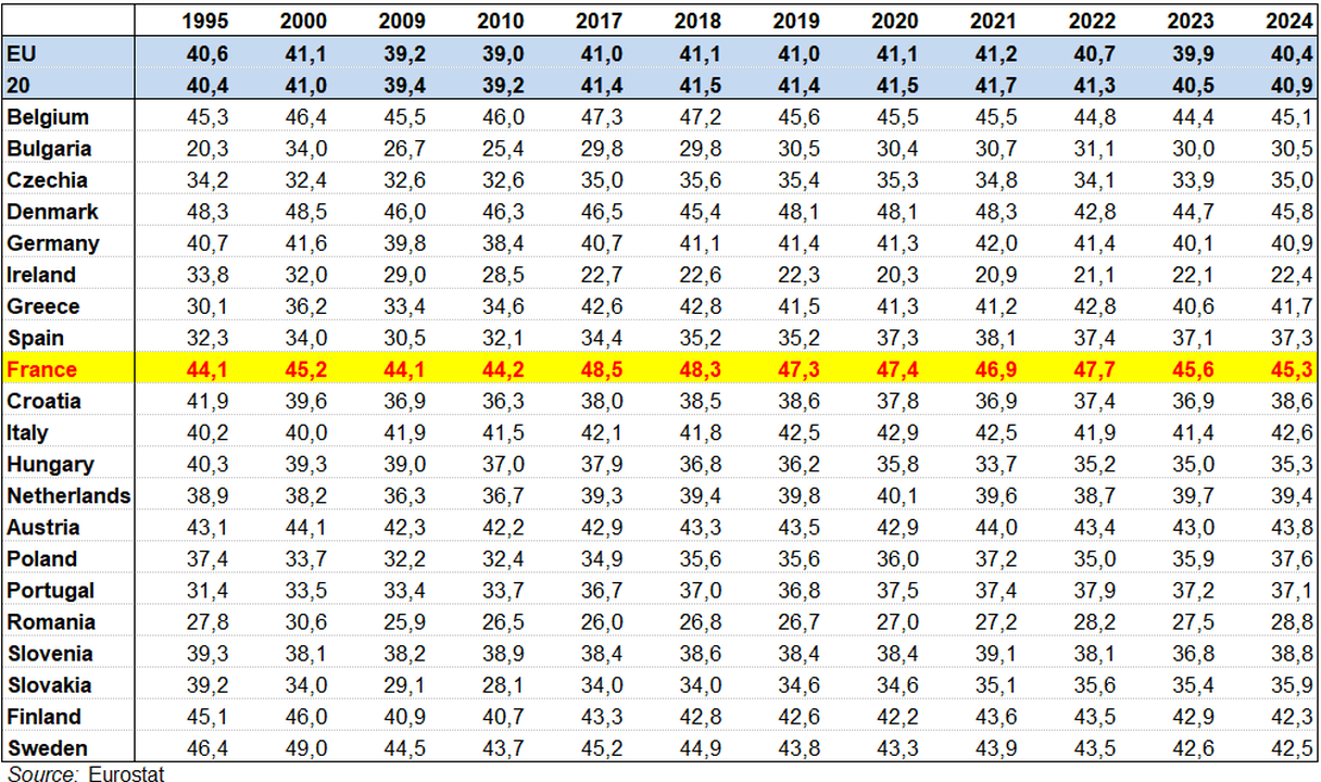 Par rapport à la l’UE, on a vu que la rémunération moyenne est plus élevée en France du fait des cotisations sociales (salariales et patronales). Elle ne l’est pas vraiment par rapport à certains voisins de l’Europe occidentale (Allemagne) et les pays scandinaves.