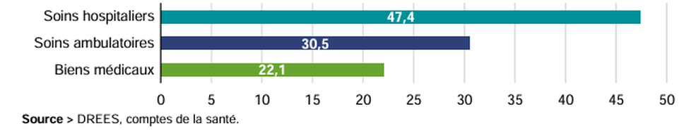 » Bien que le système français de santé fasse de plus en plus de place au privé, le financement demeure essentiellement public. En matière de santé par exemple, aux États-Unis, les dépenses publiques sont faibles, mais le citoyen américain paye deux fois plus que le citoyen français, pour une espérance de vie nettement moindre. Le citoyen allemand paye quant à lui 25 % de plus, selon l’OCDE. »
