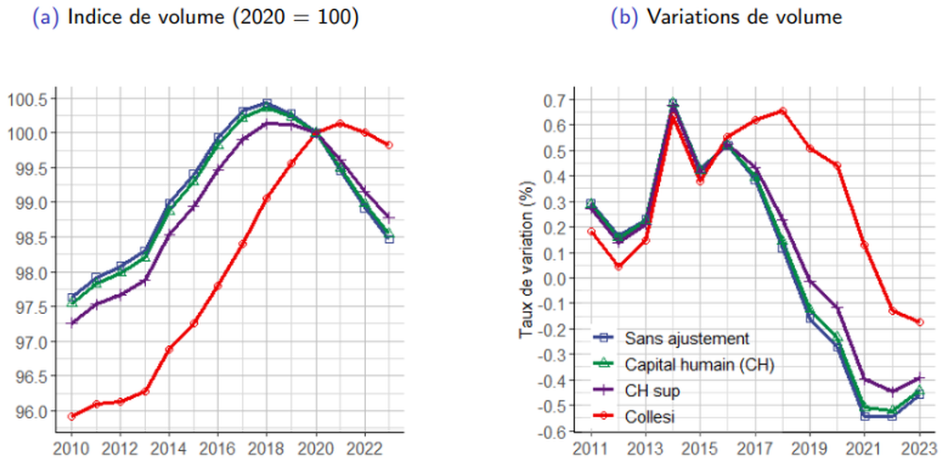 Elle observe que « les moyens des services publics ne sont pas à la hauteur des besoins. Si le nombre d’agents publics augmente dans l’absolu (mais de manière très hétérogène en fonction des secteurs), en réalité, la part des fonctionnaires dans l’emploi total aurait diminué, passant de 16,3 % en 2006 à 14,6 % en 2021. Et le manque d’agents publics, en particulier dans certains secteurs comme l’éducation ou la santé, crée des conditions de travail dégradées. On fait alors face à une crise d’attractivité auto-entretenue.