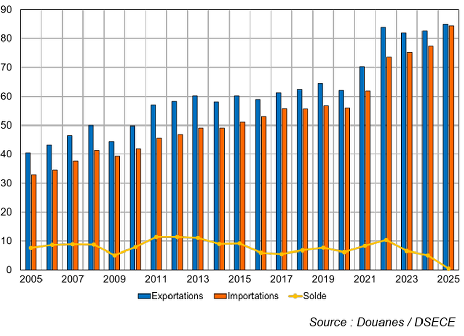 ° On étudie le solde extérieur agroalimentaire, y compris celui des IAA. En 2022, l’excédent agroalimentaire progresse mais les échanges avec l’Union européenne sont désormais déficitaires.