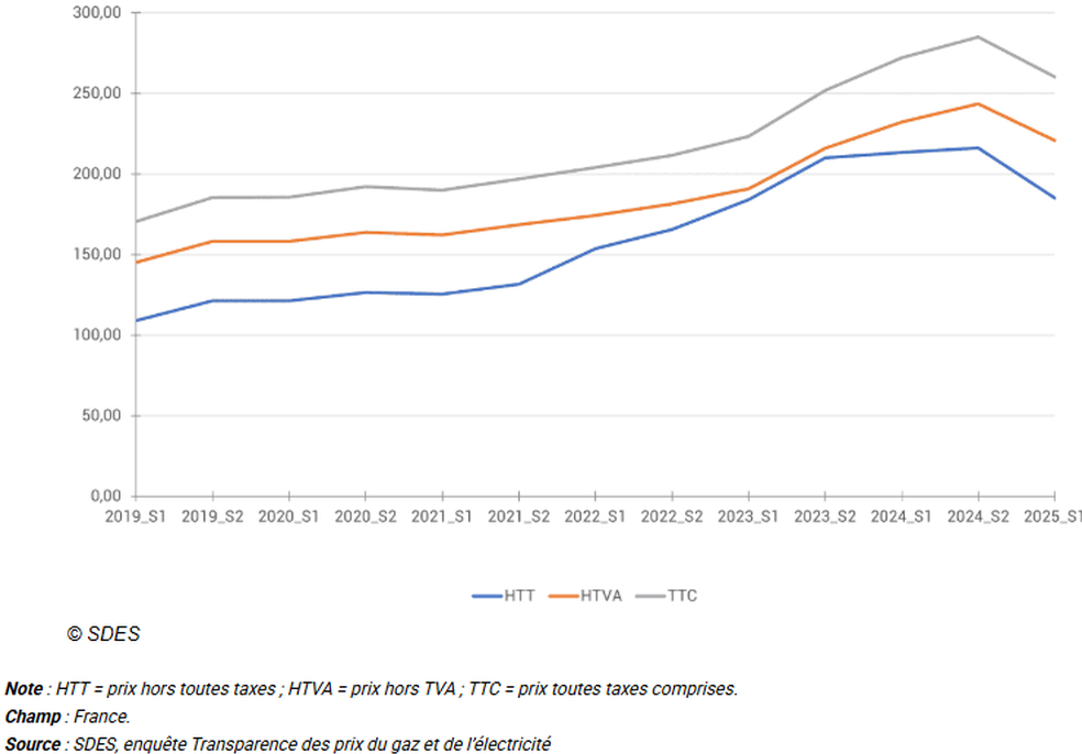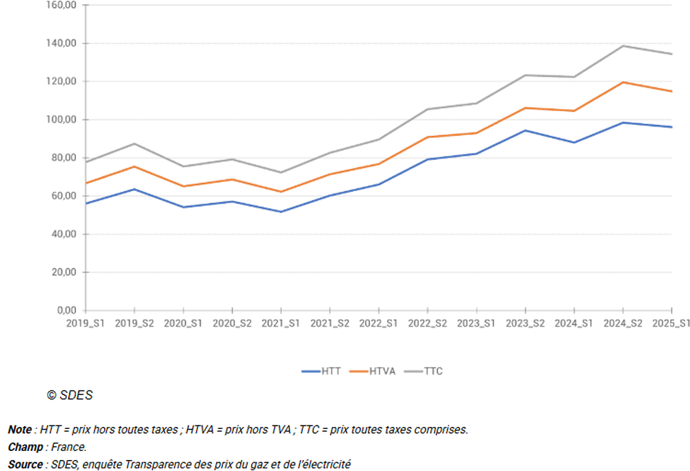 [8 ]https://www.statistiques.developpement-durable.gouv.fr/prix-du-gaz-et-de-lelectricite-au-premier-semestre-2025?rubrique=&dossier=188voir aussi la hausse des prix de l’énergie pèse sur le budget des ménages, https://www.insee.fr/fr/statistiques/6010078?sommaire=6005764#:~:text=CONTENU-,%C3%89clairage%20%2D%20La%20hausse%20des%20prix%20de%20l’%C3%A9nergie%20p%C3%A8se%20sur,21%20%25%20et%203%20%25%20respectivement.