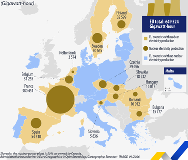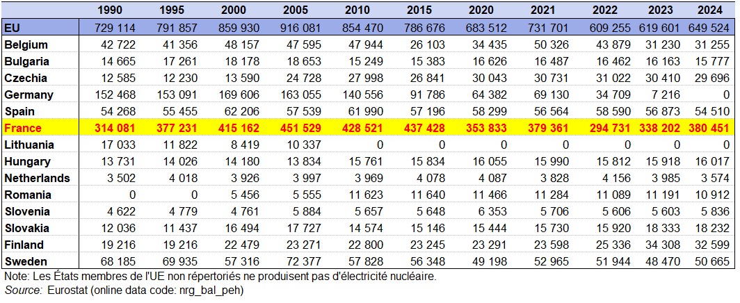 Production d’électricité nucléaire dans l’UE en Gwh en 2024