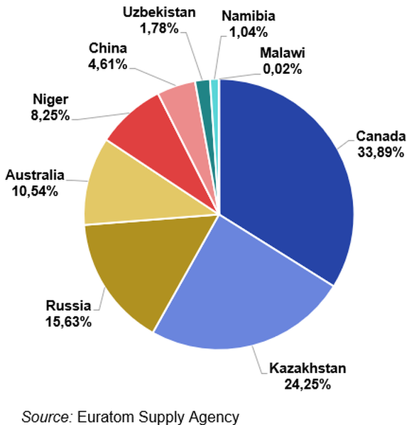 Sources d’approvisionnement en uranium de l’UE en %, 2024