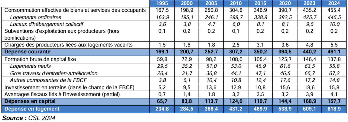 la consommation en produits spécifiques (produits caractéristiques et biens et services connexes). Elle se décompose en une consommation finale effective (CFE dans le tableau suivant et une consommation intermédiaire (CI), cette dernière comprenant également la consommation correspondant à une production auxiliaire (interne). La consommation finale effective comprend celle en produits marchands et non-marchands, celle-ci se subdivisant en une consommation individuelle et collective .