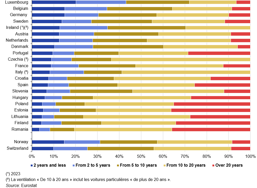 Dans l’UE, la part des dépenses de consommation des ménages consacrée à l’achat de véhicules est restée stable en 2022 par rapport à 2012. En revanche, les parts consacrées à l’exploitation d’équipements de transport personnel et aux services de transport ont diminué. En 2022, les parts de l’exploitation d’équipements de transport personnel et des services de transport ont augmenté pour la deuxième année consécutive, après des baisses relativement importantes en 2020. En revanche, la part consacrée à l’achat de véhicules a diminué pour la deuxième année consécutive en 2022, après être restée stable en 2020.