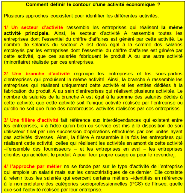 ° Selon l’Insee, relèvent de l’industrie les activités économiques qui combinent des facteurs de production (installations, approvisionnements, travail, savoir) pour produire des biens matériels destinés au marché. Certains économistes y rajoutent les produits énergétiques.