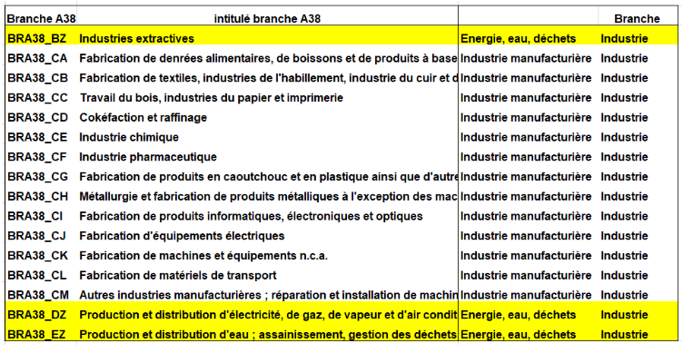 Branches industrielles de l’Insee issues de la nomenclature d’activité française (NAF