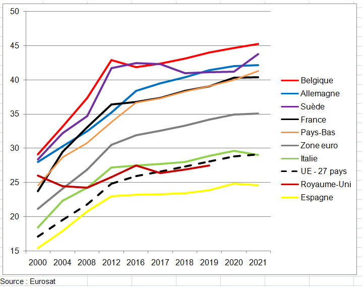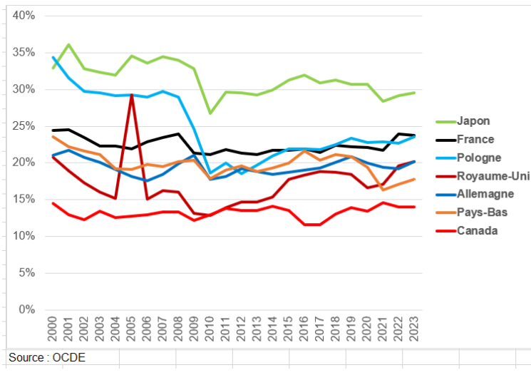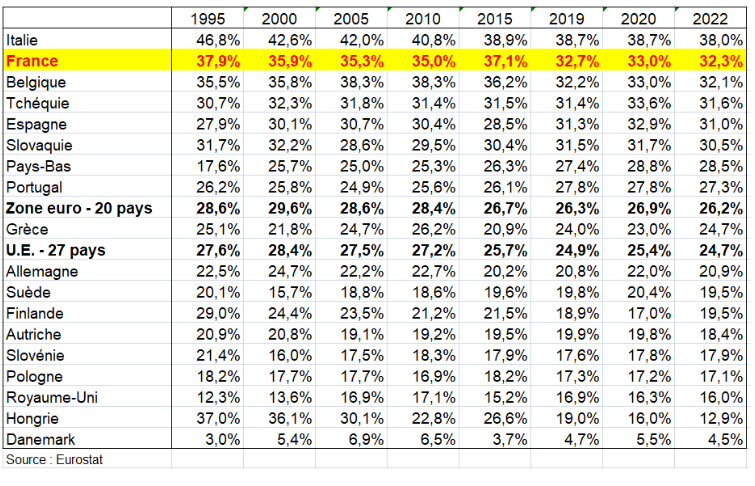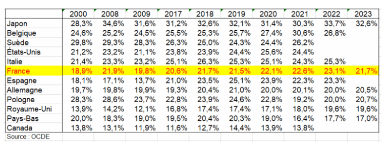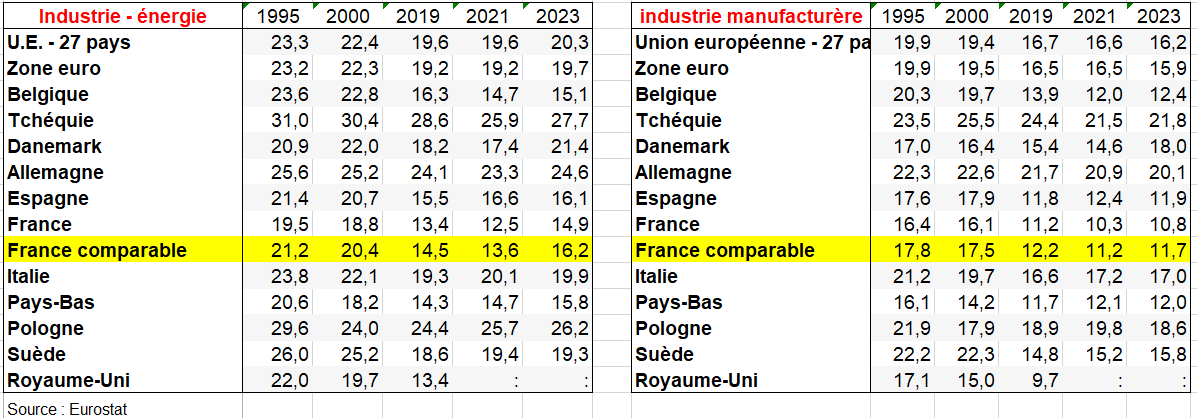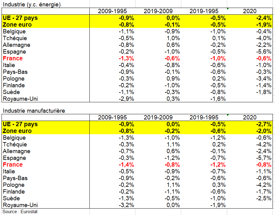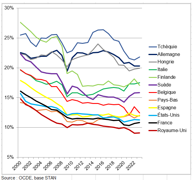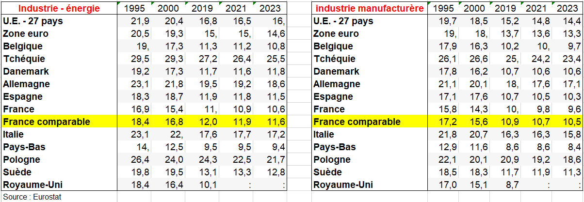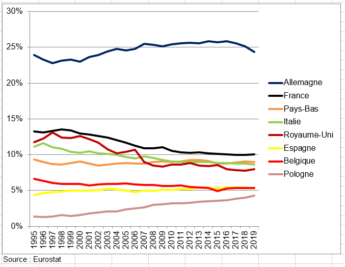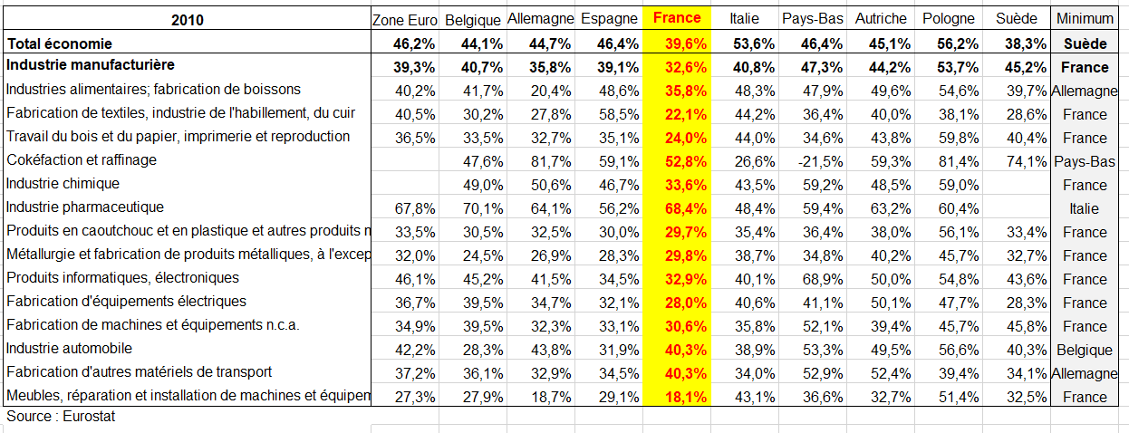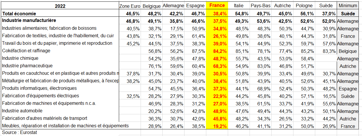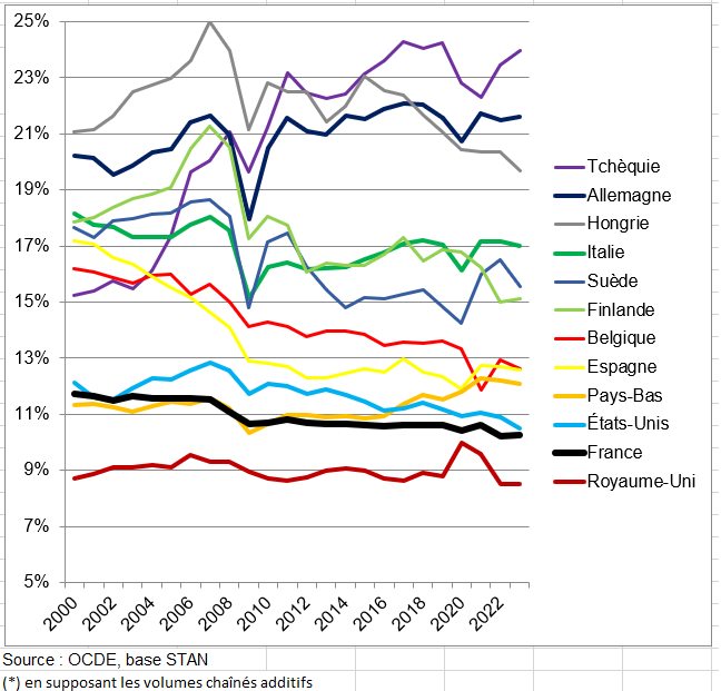 [2] Évolutions et comparaisons internationales, France Stratégie, https://www.strategie.gouv.fr/publications/politiques-industrielles-france-evolutions-comparaisons-internationales, voir aussi https://blog.insee.fr/combien-pese-l-industrie-en-france-et-en-allemagne/