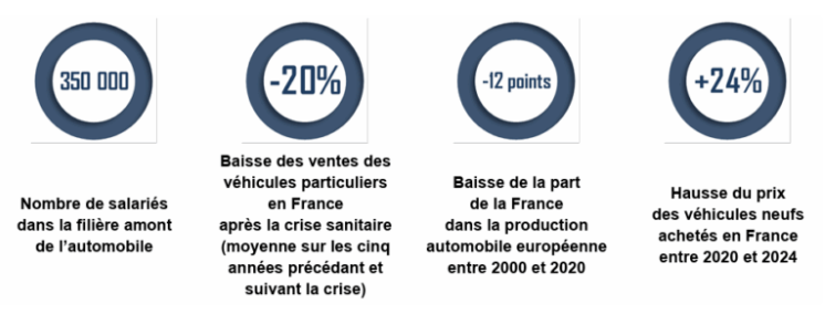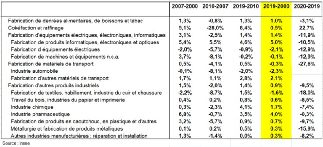 [6] https://www.entreprises.gouv.fr/files/files/en-pratique/etudes-et-statistiques/themas/transformations-et-defis-de-la-filiere-automobile.pdf, voir aussi https://www.insee.fr/fr/statistiques/5896539 voir aussi https://www.insee.fr/fr/statistiques/3703029, voir aussi https://www.insee.fr/fr/statistiques/3591216, voir aussi https://fibois-france.fr/chiffres-cles/, voir aussi https://ec.europa.eu/eurostat/statistics-explained/index.php?title=Production_and_international_trade_in_chemicals,voir aussi https://www.observatoire-metallurgie.fr/sites/default/files/documents/2018-09/synthese_filiere_electronique_v2014.pdf, voir aussi https://www.fieec.fr/wp-content/uploads/2022/02/FIEEC-VA-Filiere-Eletronique_rapport-final-VF_nov-2021-Ok.pdf