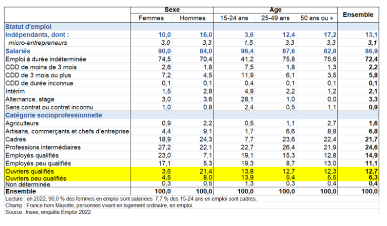 «« Dans les régions en voie de désindustrialisation, les emplois précaires d’aide soignante, femme de ménage ou d’assistante maternelle sont d’ailleurs tristement devenus les seules propositions de reclassement faites aux anciennes ouvrières qualifiées et nouvelles « OS du tertiaire »». Gaël Brustier et Jean-Philippe Huelin – Recherche le peuple désespérément, 2009