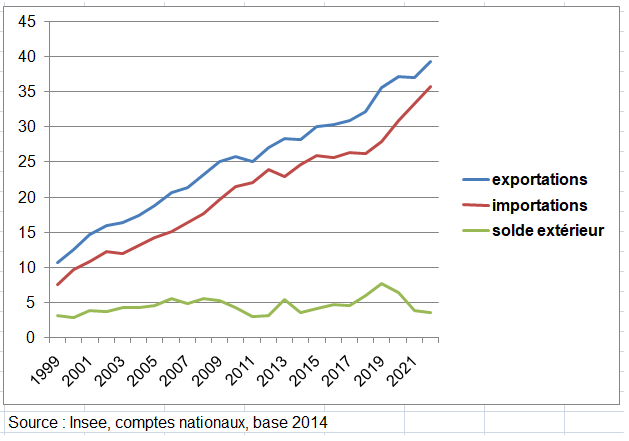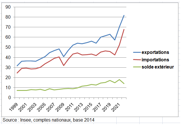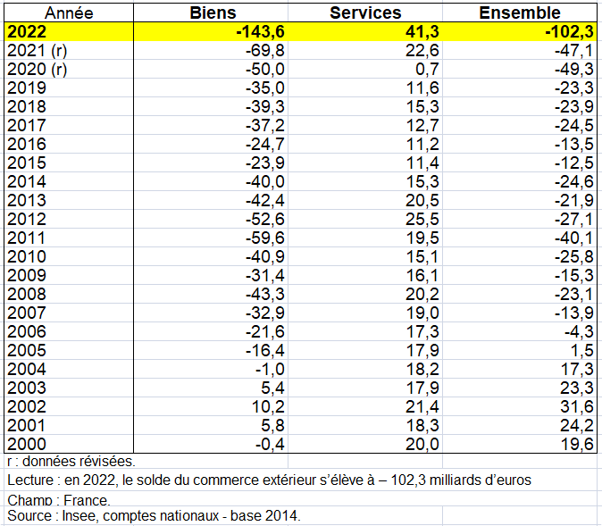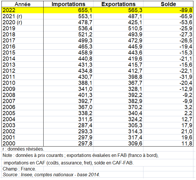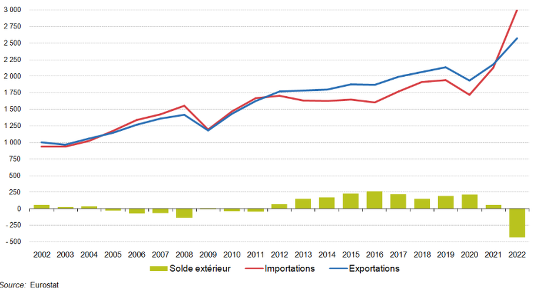 On a beaucoup parlé de la réindustrialisation de la France ces derniers temps, mais n’est ce pas le contraire qui va se passer ? Aujourd’hui, la question pour des entreprises industrielles c’est de savoir si il est possible de fabriquer des produits sans énergie (gaz, électricité) abondante et bon marché. Certaines usines ont freiné leur activité en 2022. Donc le spectre d’une nouvelle vague de désindustrialisation ne guette-t-il pas la France? Les entreprises ne vont-elles pas délocaliser leur activité pour rester compétitives (après une tendance à la relocalisation suite à la pandémie), par exemple aux États-Unis où l’énergie est moins chère? De plus l’industrie ne se ramène pas seulement aux médicaments. Les biens intermédiaires et d’équipement forment le noyau de l’industrie. On a vu que ce sont eux que la France importe en premier même si le déficit des biens de consommation ne cesse aussi de s’aggraver.