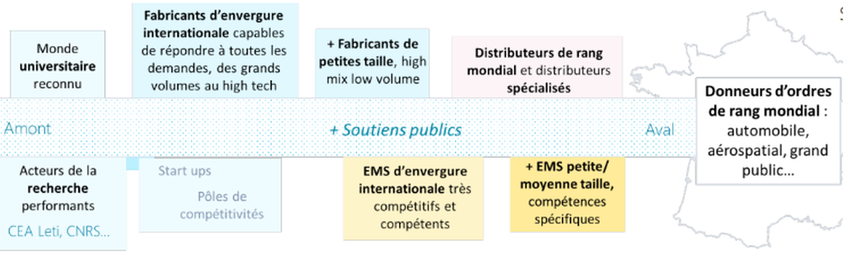 En augmentant de 90 % sa production de composants électroniques, l’État français souhaite réduire sa dépendance aux puces asiatiques. Aujourd’hui, les usines d’électroniques de Taïwan comptent parmi les plus grands et les plus avancés producteurs au monde de puces de haute technologie, la Taïwan Semiconductor Manufacturing Company (TSMC) étant leader sur ce marché. Les perturbations dans la chaîne d’approvisionnement, déstabilisée par la forte demande en électronique et une reprise plus rapide que prévu de l’économie, ont notamment forcé plusieurs constructeurs automobiles européens et américains à ralentir leur production, faute de disposer de ces composants. Dans l’automobile, la demande de composants est très forte face à des véhicules de plus en plus équipés en systèmes électroniques (du moteur à l’ABS en passant par les airbags et l’aide au stationnement).
