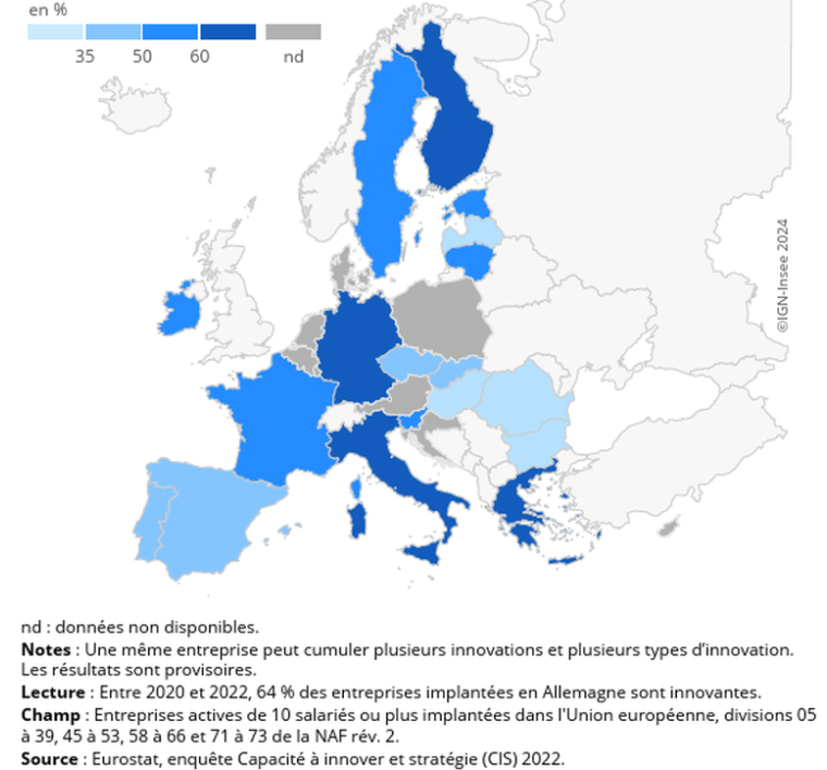 ° Il apparaît que que la France est mieux dotée dans ce domaine. Les fabricants de haute technologie étaient les plus nombreux en Allemagne (9 798), en Italie (5 459) et en Pologne (4 314). Ils affichaient le chiffre d’affaires le plus élevé en Allemagne (211 milliards d’euros), en France (147 milliards d’euros) et la valeur ajoutée la plus élevée en Allemagne (73 milliards d’euros), en France (39 Mds d’euros) . Par rapport au chiffre d’affaires de la population totale des entreprises, la part des fabricants de haute technologie était la plus élevée en Hongrie (5,8 %), en Finlande (5,4 %) et en France (4,0 %). Les biens de haute technologie limitent la « casse » de la désindustrialisation. Il existe de fortes liaisons entre les entreprises produisant des biens de haute technologie et celles produisant des services numériques.