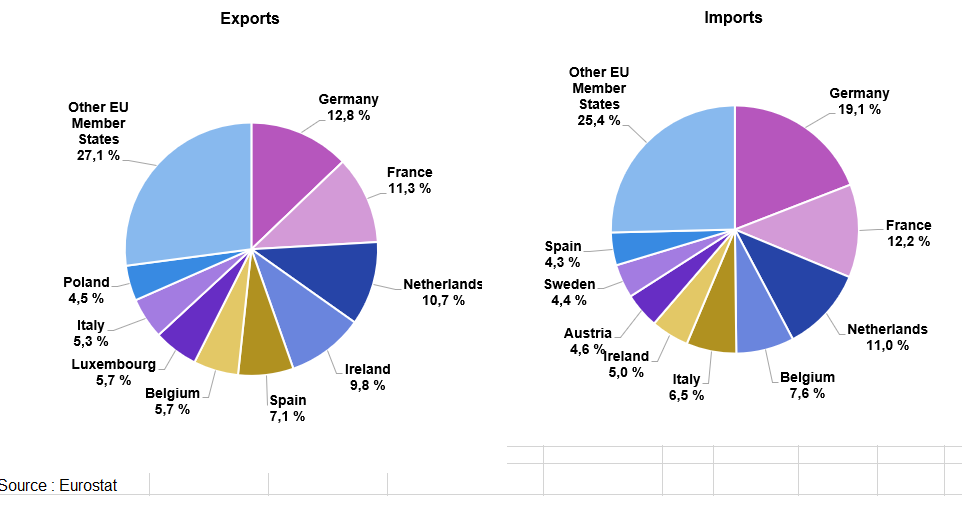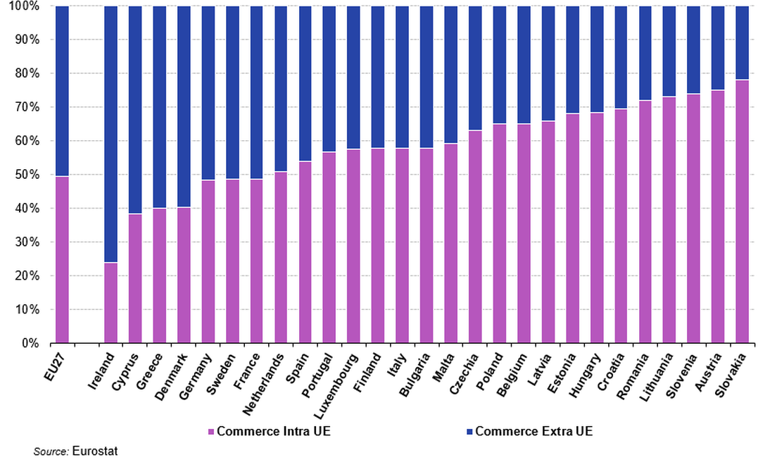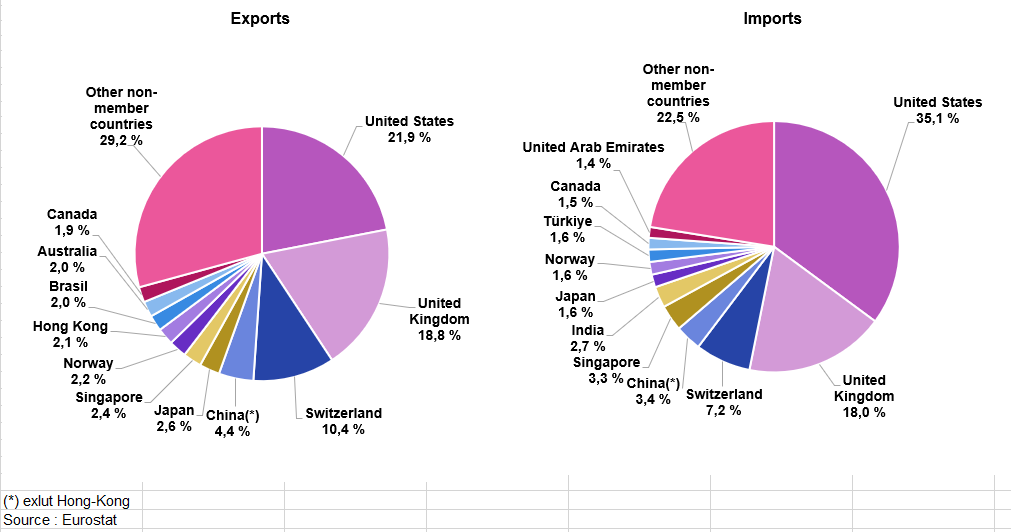 Eurostat publie les résultats des différents pays et agrège également les résultats au niveau européen pour diffuser les statistiques sur le commerce extérieur de l’ensemble de l’UE avec les pays tiers (hors UE).