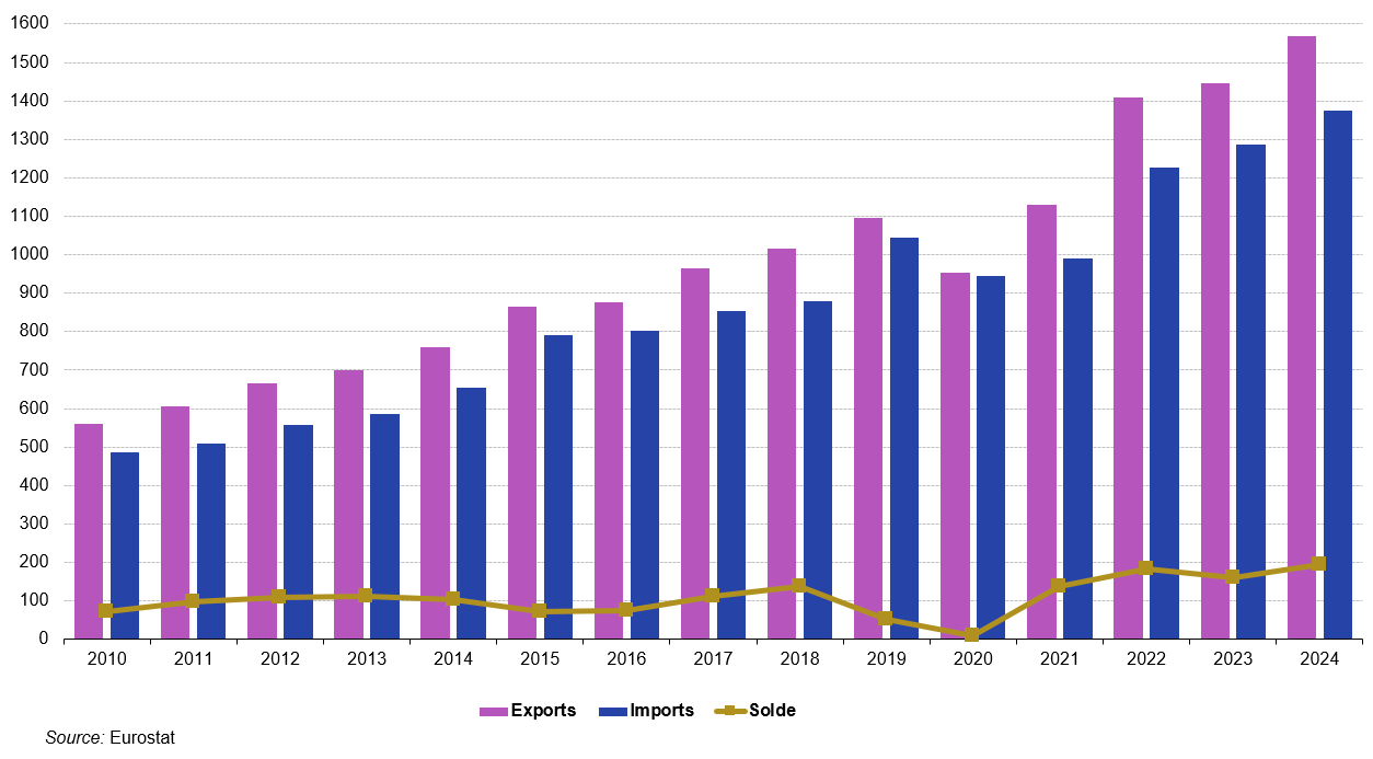 1/ L’excédent des échanges de services retrouve un niveau très élevé en 2024