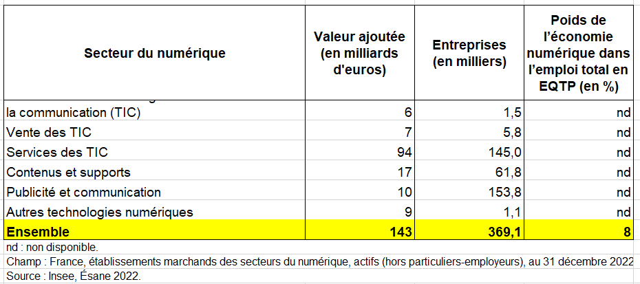 – Les parts ne sont pas disponibles pour plusieurs colonnes d’emploi. Par exemple, la consommation intermédiaire des services de cloud computing n’est présente dans aucune source de données.