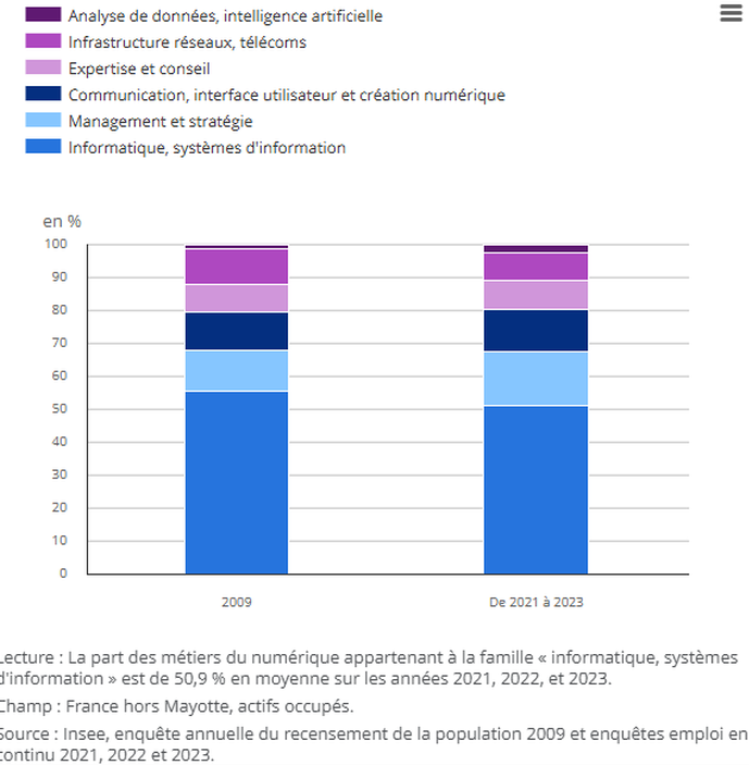 L’Insee a rassemblé les données de la statistique publique rendant compte des transformations de l’économie et de la société par le numérique (https://www.insee.fr/fr/statistiques/8616883).