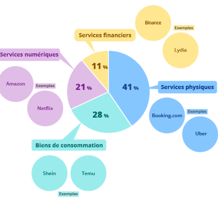 - Services numériques payants, ou services liés à l’informatique et à la communication, fournis moyennant des frais facturés au consommateur.