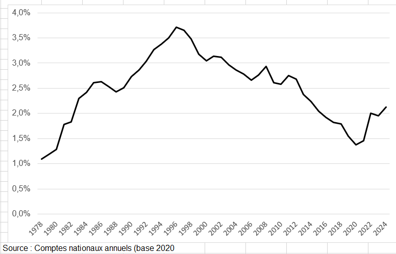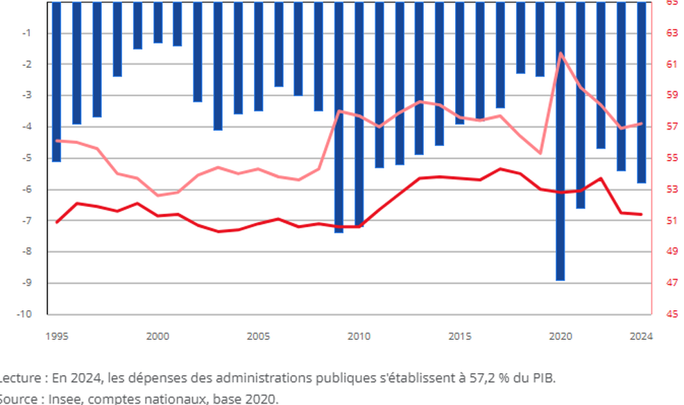Dépenses et recettes publiques entre 1995 et 2024