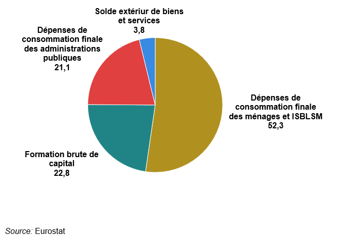 Premièrement, le PIB peut être mesuré comme la somme des dépenses par les utilisateurs finaux. C’est ce que l’on appelle l’approche « demande ».